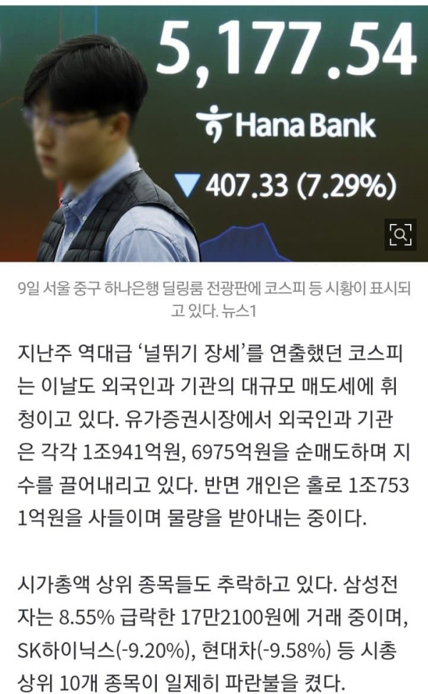 훌쩍훌쩍 8% 폭락 국장 근황.. 서킷브레이커 발동.jpg